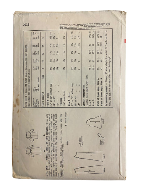Style 2935 vintage 1960s dress sewing pattern Bust 34 inches