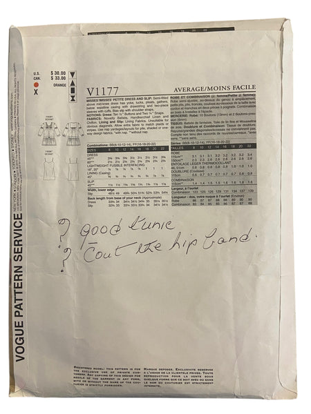 The pattern is complete and cut out, to the bust 34 inch size. the pieces are creased and some are cut out a little roughly. The instructions are present. The pattern envelope is in fair condition, it is creased.