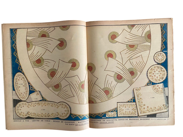 Small broadsheet, 16pp, with coloured front and rear covers and double-page centre spread, and numerous illustrations and patterns in the text; cover and edges mildly browned and chipped/ small tears on edges, else a very good, copy. SCARCE.