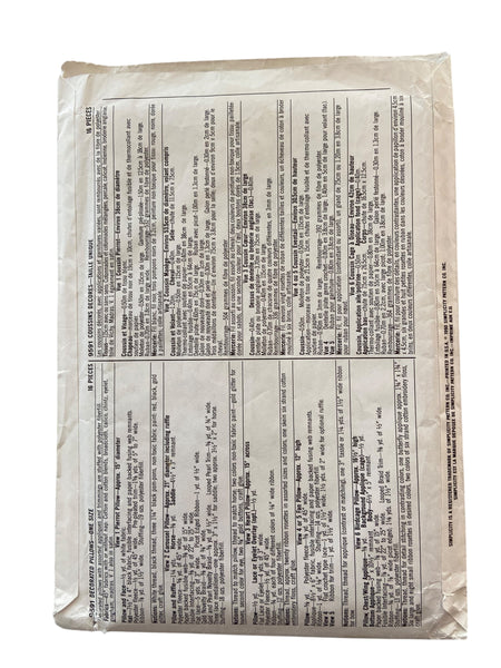 Simplicity 9591 decorated pillows with assorted appliqués and trimmings are stuffed with polyester fibrefill.