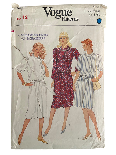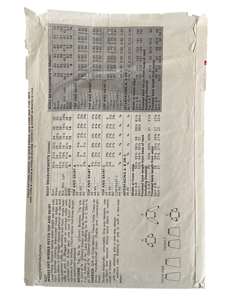 Vogue 8227 vintage 1980s top and skirt sewing pattern. Bust 34 inches